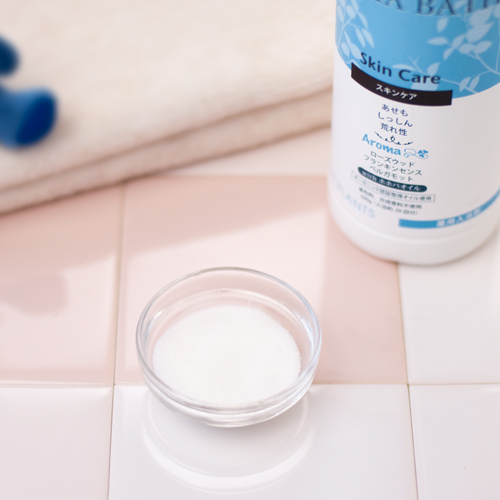 - ご家庭のお風呂のお湯(約180L)に25g(キャップ約半分を目安として)を入れ、よくかきまぜてご入浴ください。お湯の量に合わせて適宜増減してください。