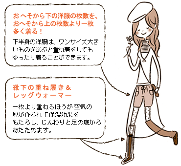毎日の生活に取り入れられる「冷え」対策をご紹介します。セルフメンテナンスで「冷えないからだ」を作りましょう。 足からおへそまでを温める!