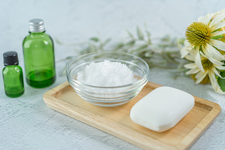 とくに死海の「デッドシーソルト」は、マグネシウムが豊富で高い保湿、バリア機能回復効果があります。エッセンシャルオイル入りのバスソルトなら、香りの効果も加わってさらにリラックス感が増します。