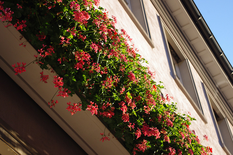 ヨーロッパでは、窓辺にゼラニウムなどの鉢を置いていますが、花のある景観を楽しむ目的だけでなく、窓から蚊や虫が入ってくるのを避けるためでもあります。