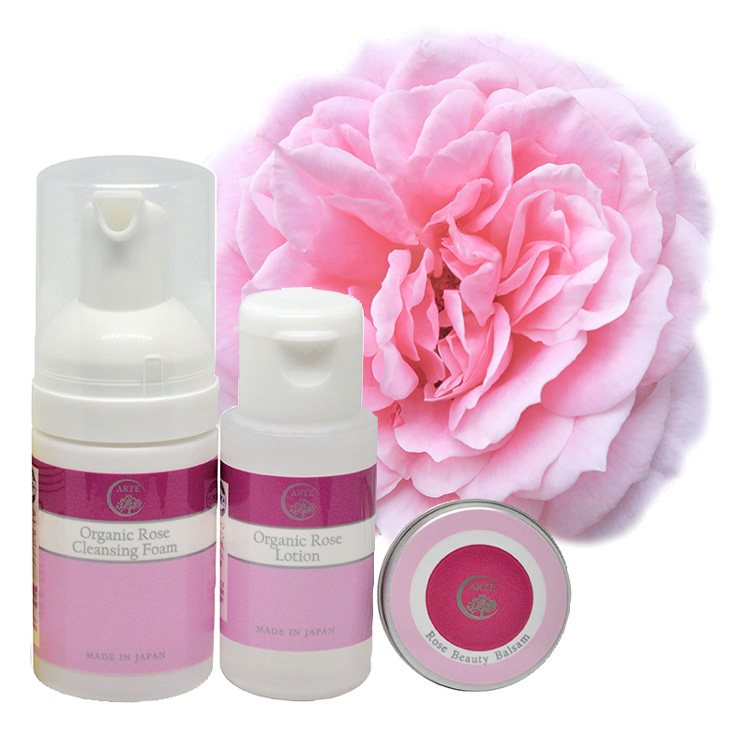 『手軽に本物のオーガニックコスメを試してみたい』 「旅行中にも天然成分だけで作られているコスメにこだわりたい」そんな人のためにトライアルセットを作りました。この「トライアルセット」には、 すべてのアイテムに無農薬の国産オールドローズのエキスが配合されています。
